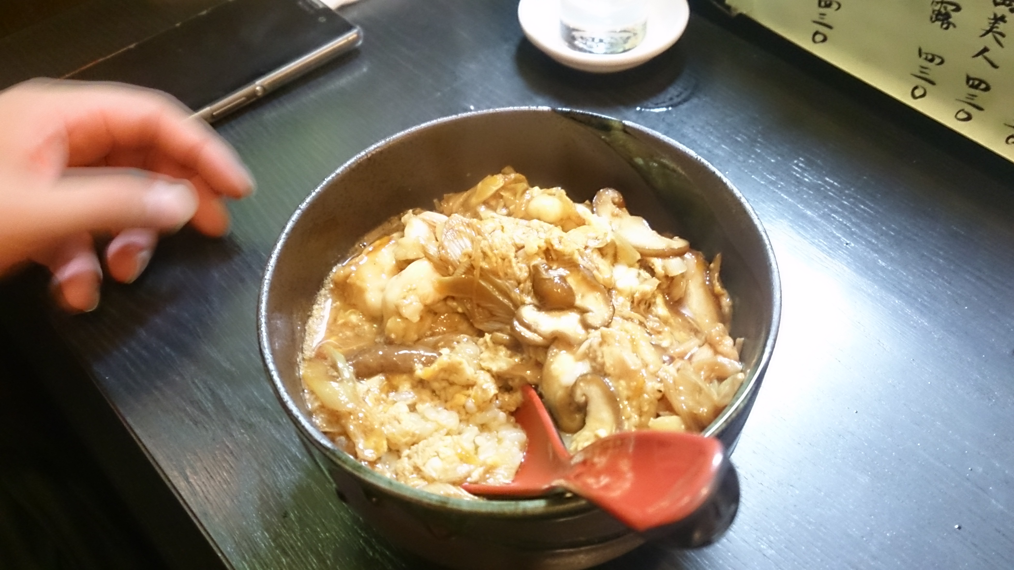 ・丼の方は、卵の甘みがしっかりと効いてて、ご飯と絡み合った時のくちどけが、ふわぁ~となり、他の素材の味も染みてて良かったです。ただただ卵を掛けただけの親子丼とは違いました。