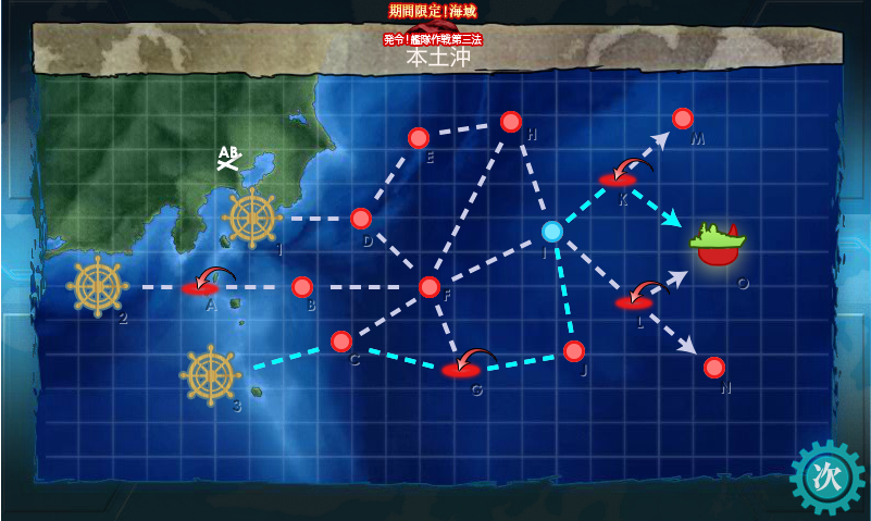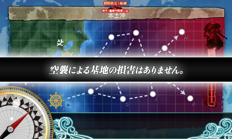 とりあえず、削りは史実艦を揃えて最短ルートの[1DFIKO]で削りきり、ゲージ破壊手前になると急に難易度が跳ね上がるので、2航戦のルート[3CGJIKO]で攻略しました。